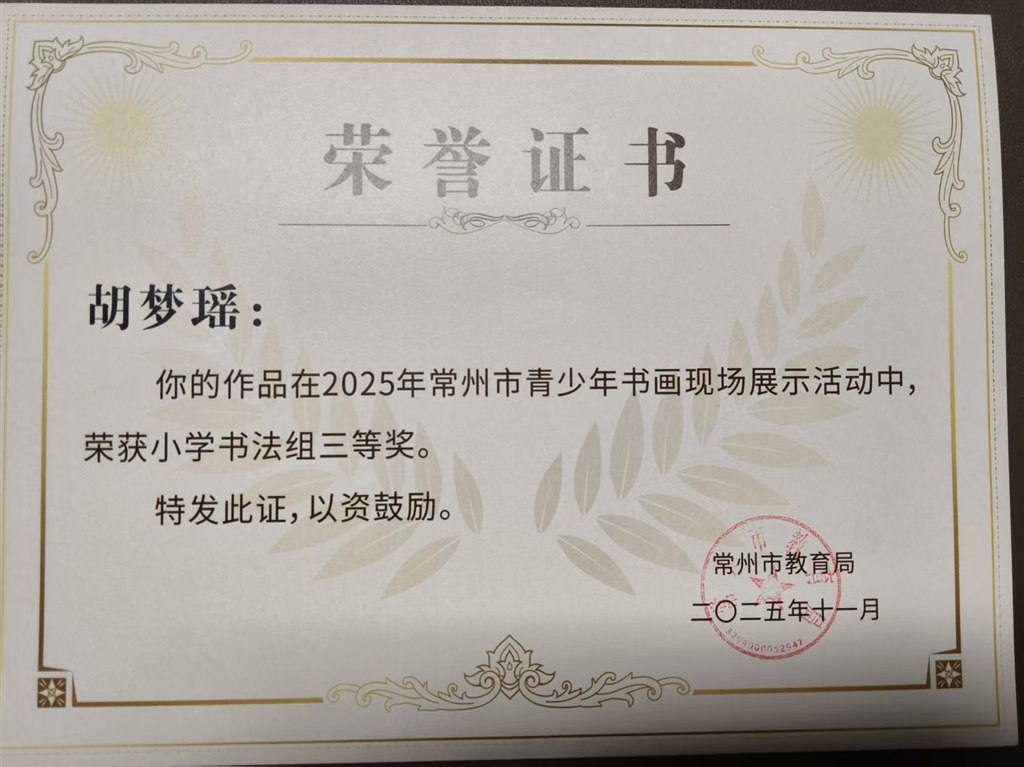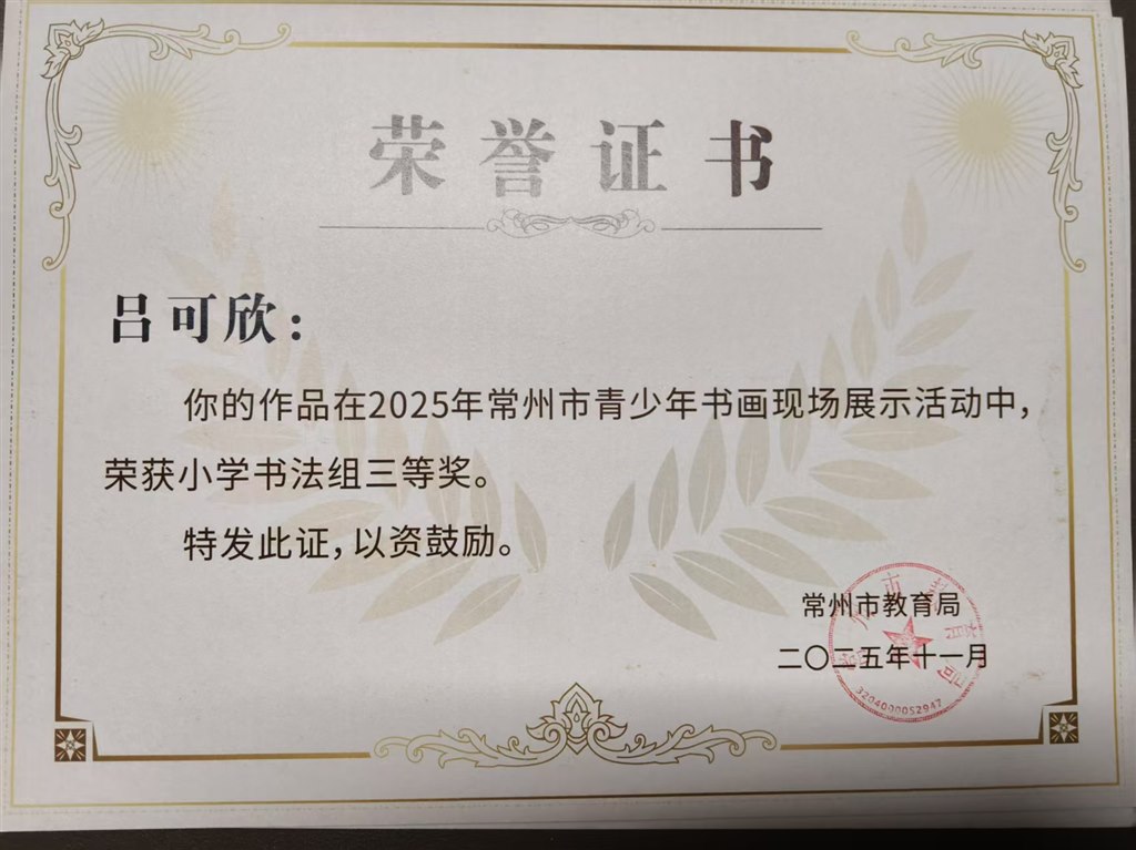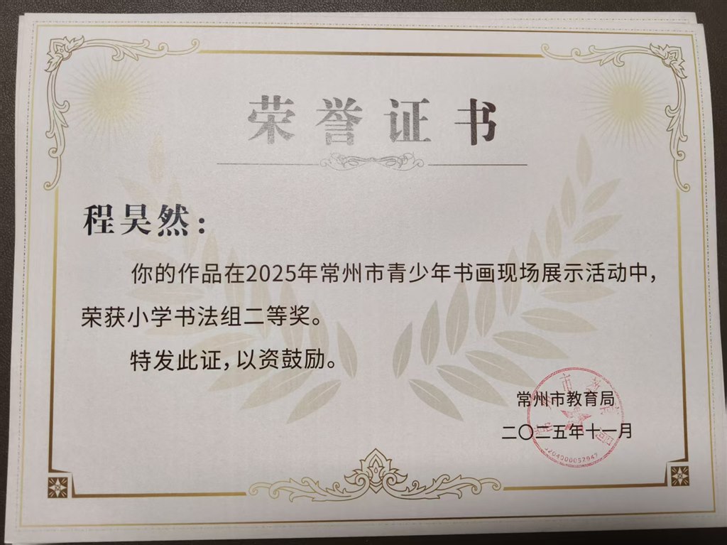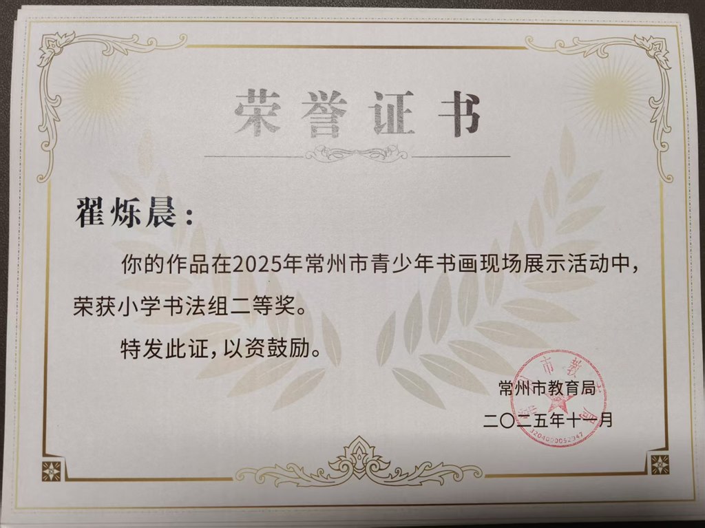 常州市现场书法大赛四位同学获奖